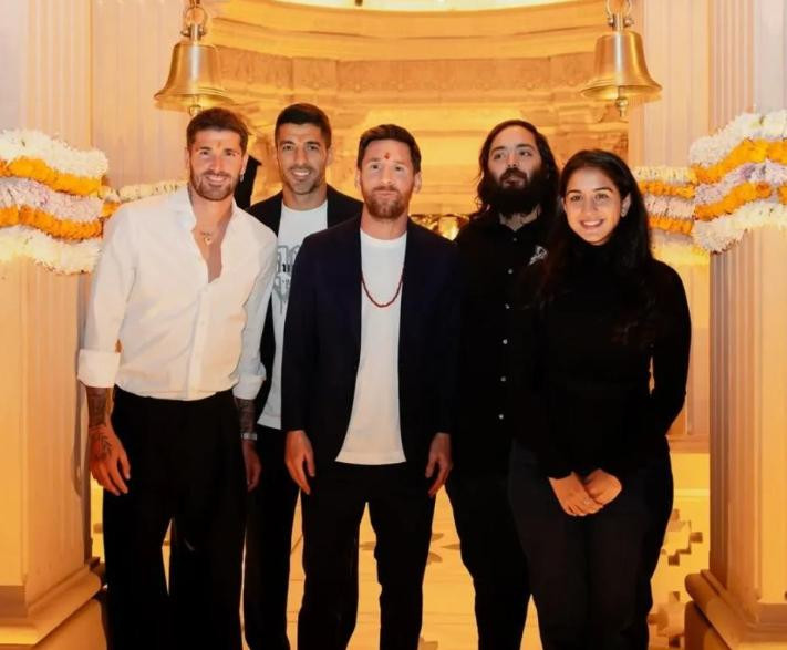 阿纳特和他美丽的妻子拉迪卡,亲自为梅西和他的队友们举行了传统的印度教祈福仪式。