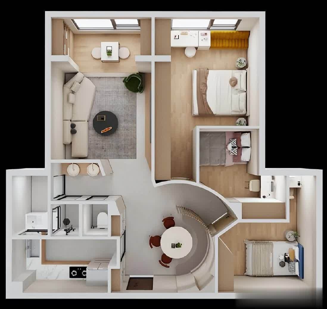 总结:小户型改造的底层逻辑功能叠加>面积扩展:如主卧改客厅、儿童房窗下嵌入书桌;光线共享>封闭切割:通过隔断透光材质或窗位分割保障采光;动线优先级>形式美感:如卫浴三段式设计、厨房L型布局。